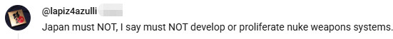 网友@lapiz4azulli强调说念,“日本毫不可,完全不可发展或扩散核刀兵系统。”